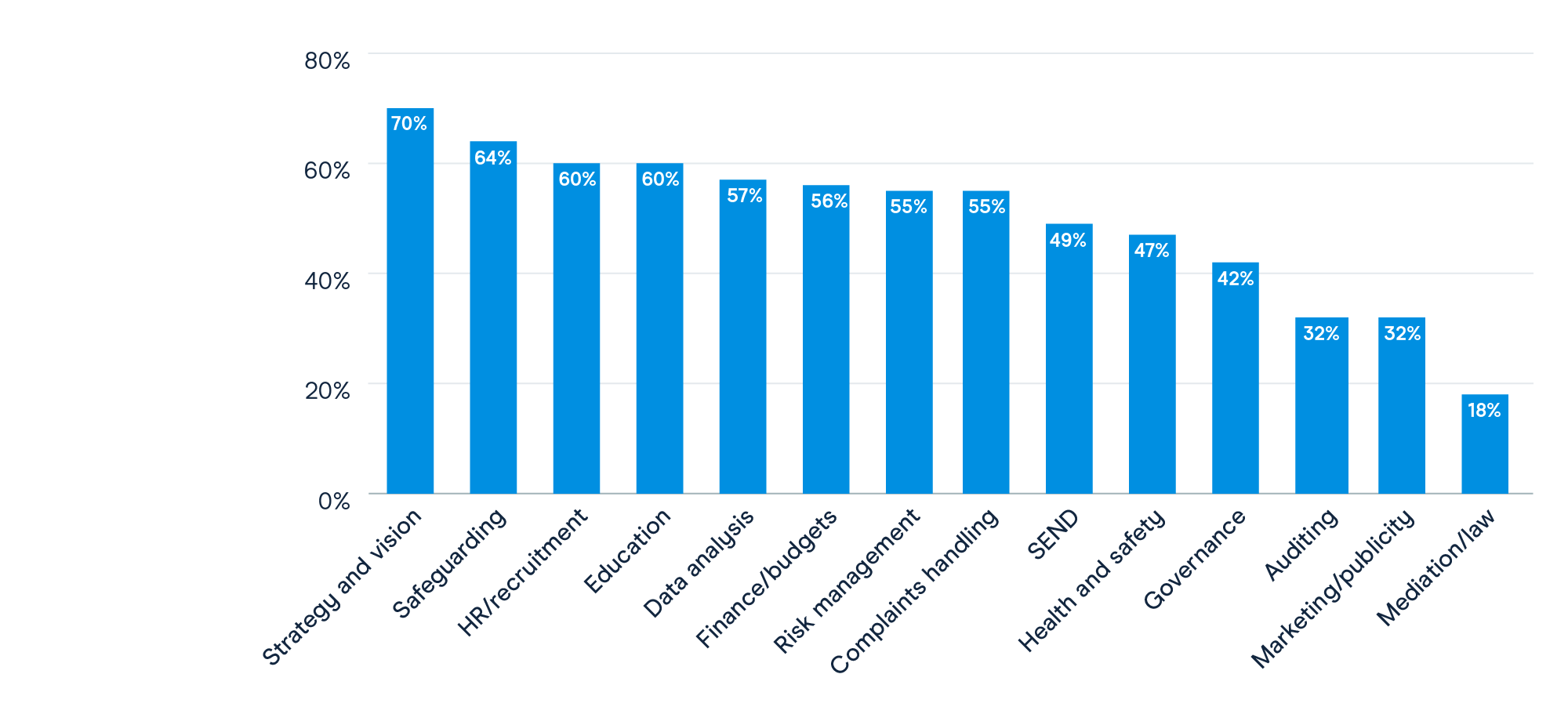 The biggest area is “strategy”, with 70% of governors reporting that they have experience here. Of all the options, that probably aligns best with one of the 3 main roles of governance - setting and monitoring the strategic vision - so that’s no bad thing.